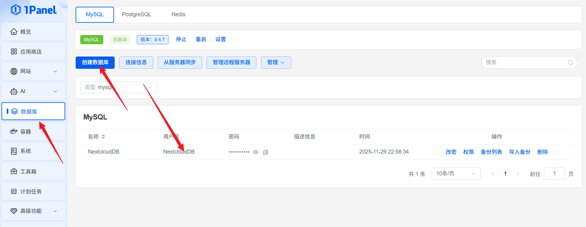• docker部署的mysql和nextcloud