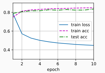 同样,通过深度学习框架的高级API也能更方便地实现softmax回归模型。