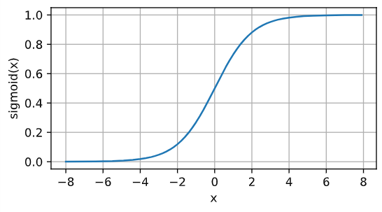 它将范围(-inf, inf)中的任意输入压缩到区间(0, 1)中的某个值: